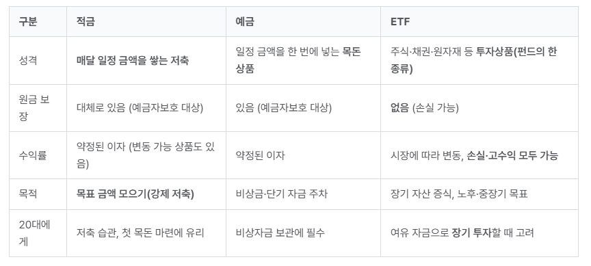 - 적금 + ETF 병행 구조를 일찍 만들기